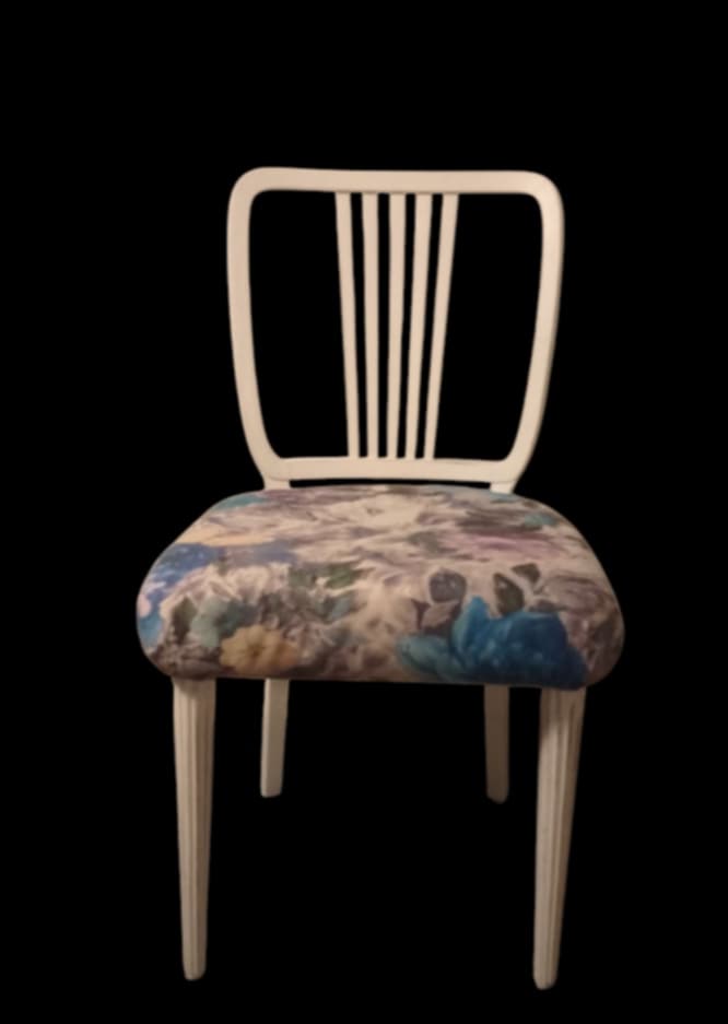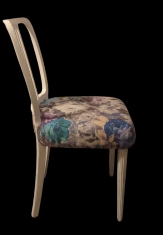 Krzesło białe w stylu Art. Deco piwonie